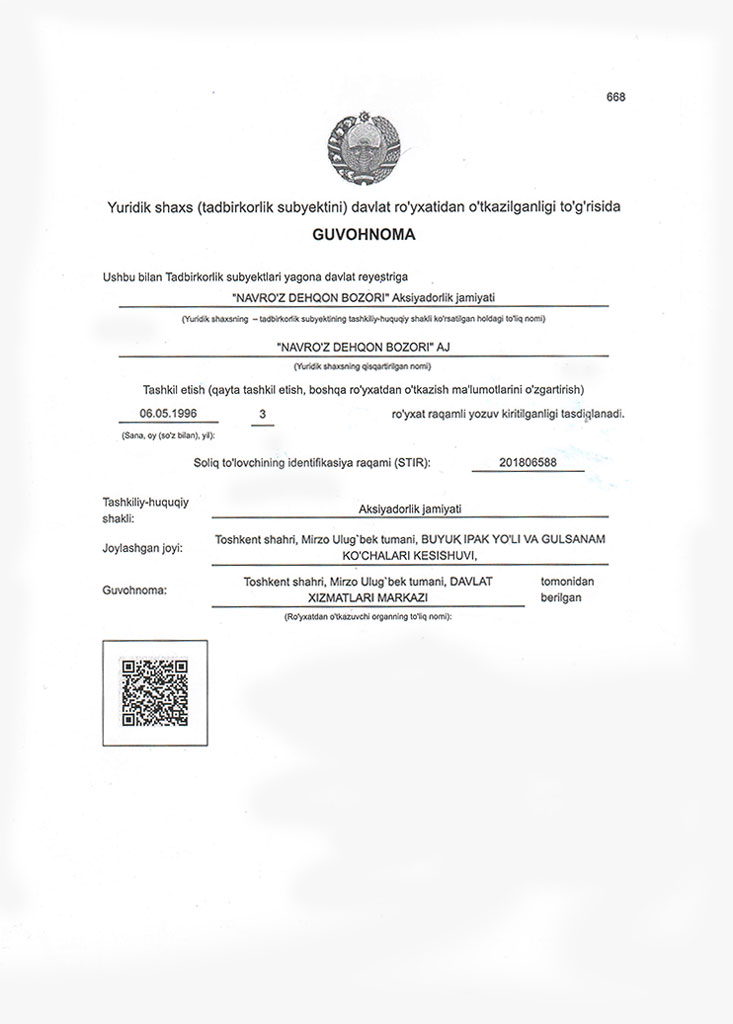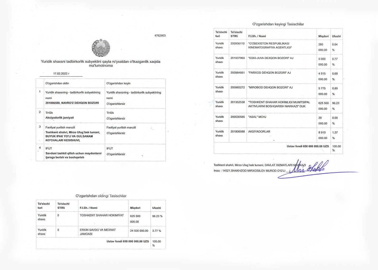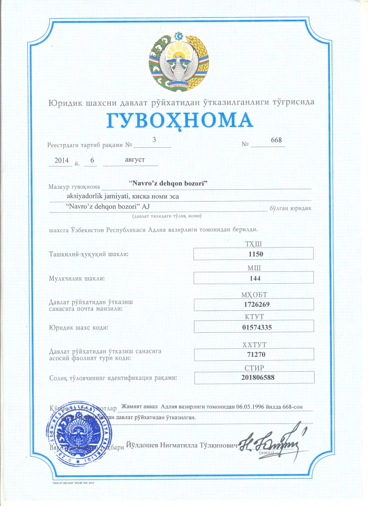 | Korporativ web-sayt / e-mail orqali | 2 |